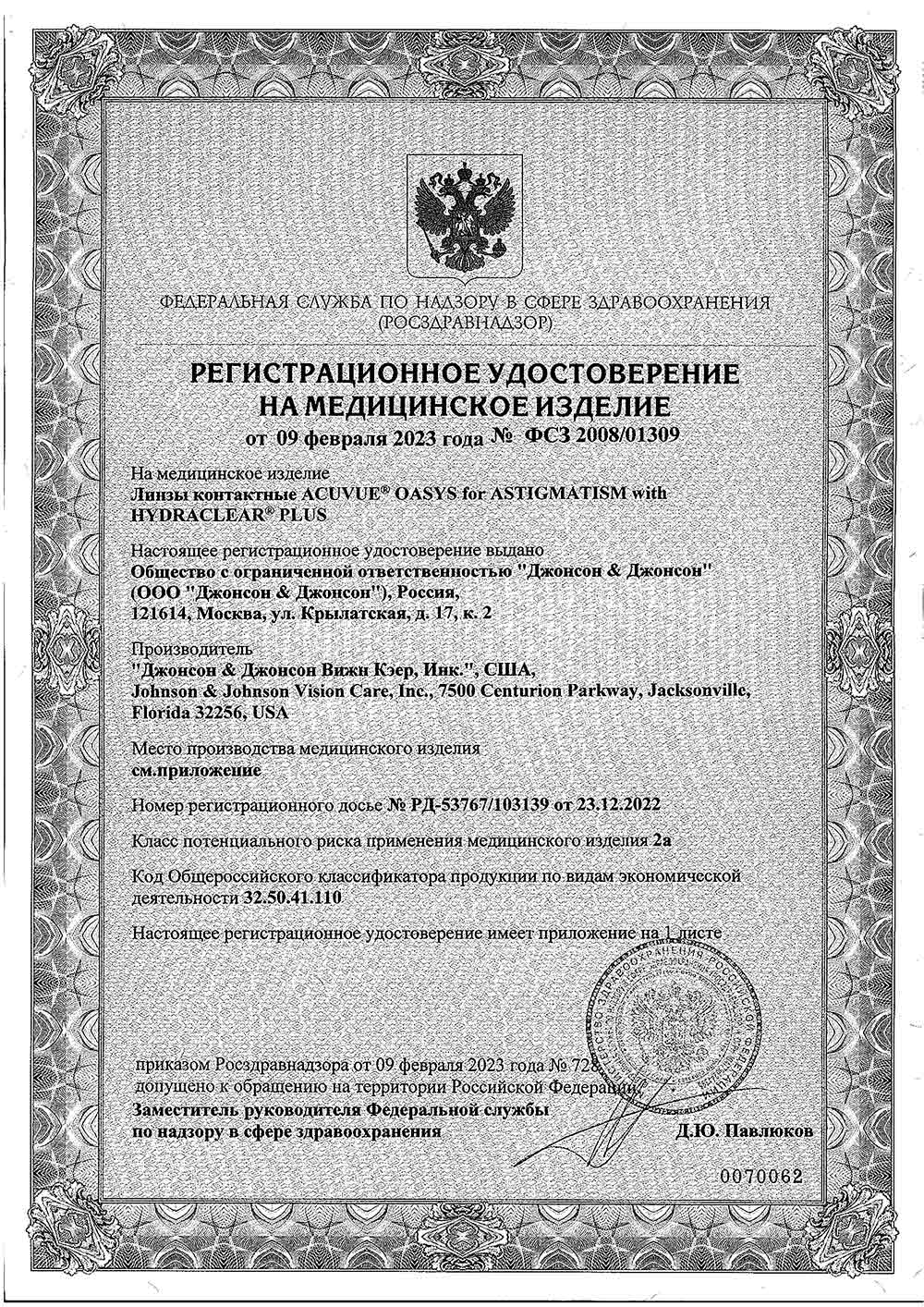 Acuvue Oasys for Astigmatism with Hydraclear Plus 6 линз