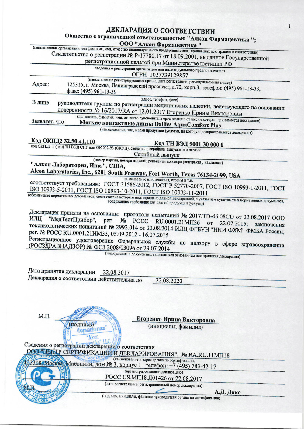 Dailies AquaComfort Plus 30 линз (поврежденная упаковка)