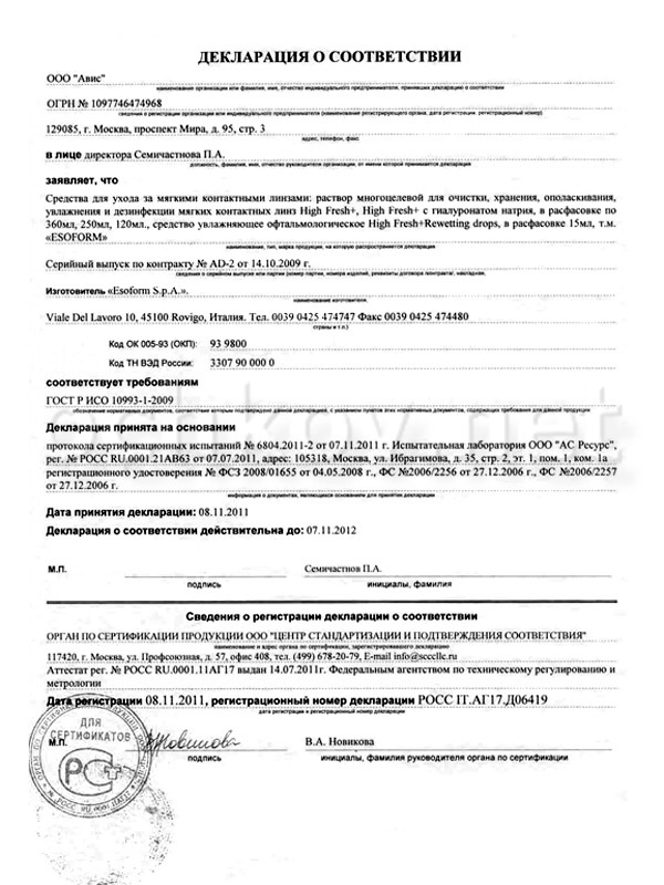 Описание "Раствор High Fresh+ с гиалуронатом натрия 360 мл"