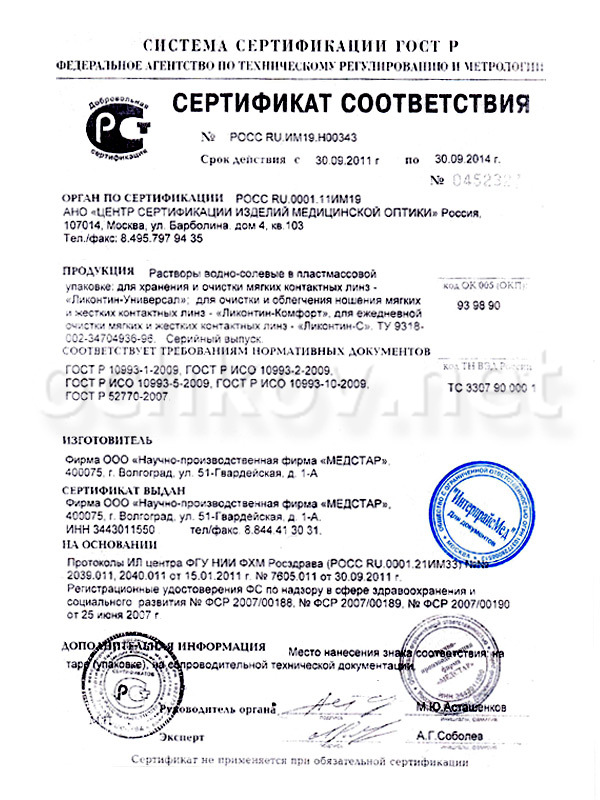 Раствор для линз Ликонтин С 18 мл
